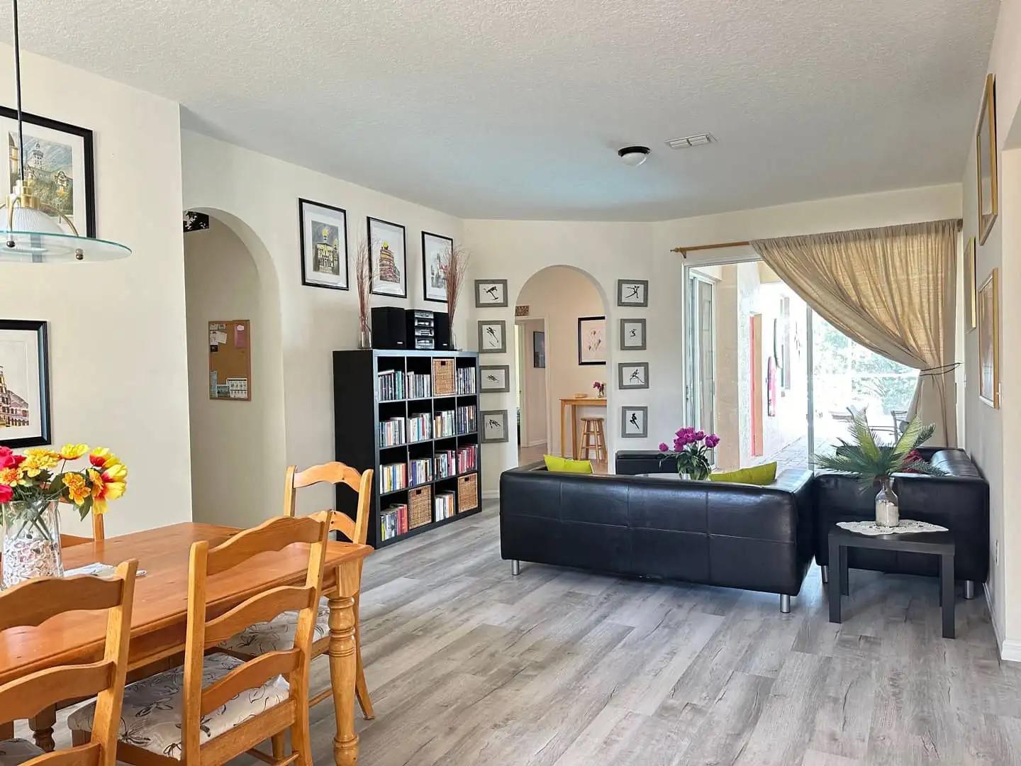 Treten Sie ein in einen offenen, sonnendurchfluteten Grundriss, der für unkompliziertes Wohnen und gute Gesellschaft konzipiert ist. Der Wohnbereich lädt zum Entspannen nach dem Strand oder Sightseeing ein, die voll ausgestattete Küche macht das Kochen zum Kinderspiel und der private Garten ist ein kleines Stück Florida für den Morgenkaffee oder Cocktails am Abend.